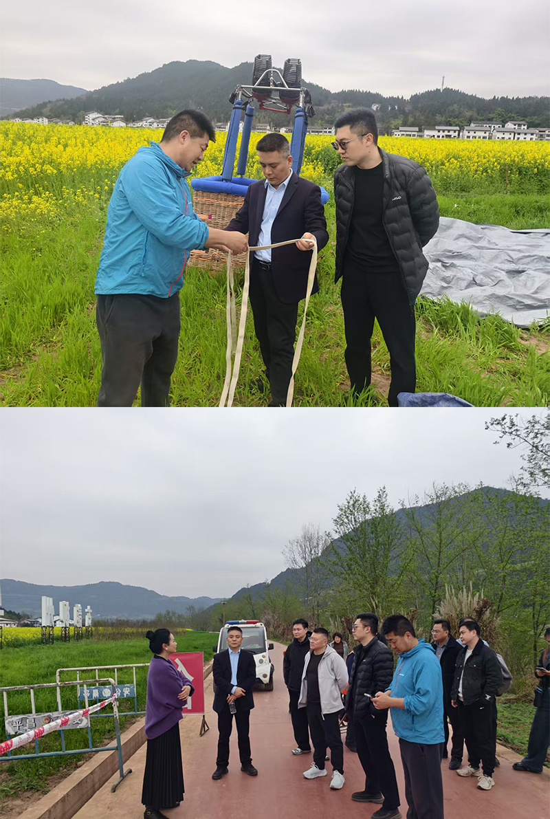 3月6日,集團黨委副書記、副董事長李斌帶隊前往平昌縣白衣古鎮(zhèn),對熱氣球飛行體驗項目開展安全生產(chǎn)檢查。集團黨委副書記、總經(jīng)理沈鵬陪同。