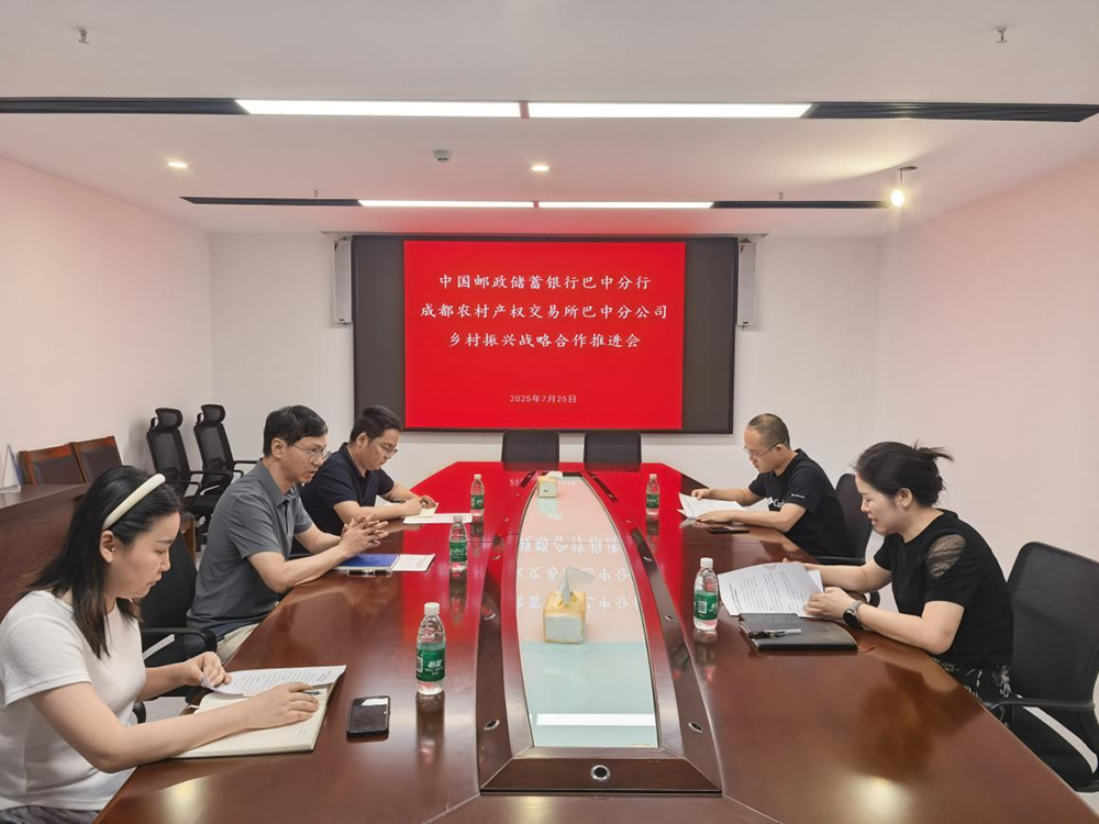 為充分發(fā)揮成都農(nóng)交所四川省農(nóng)村產(chǎn)權(quán)綜合交易平臺優(yōu)勢和郵儲銀行融資及其他綜合金融服務(wù)優(yōu)勢,通過資源互補、信息互通、協(xié)作配合,共同推進服務(wù)農(nóng)村集體經(jīng)濟組織和新型農(nóng)業(yè)經(jīng)營主體的金融支農(nóng)工作。2025年7月25日下午,中國郵政儲蓄銀行巴中分行與成都農(nóng)村產(chǎn)權(quán)交易所巴中分公司、巴中市鑫匯農(nóng)業(yè)服務(wù)有限公司召開了鄉(xiāng)村振興戰(zhàn)略合作推進會。